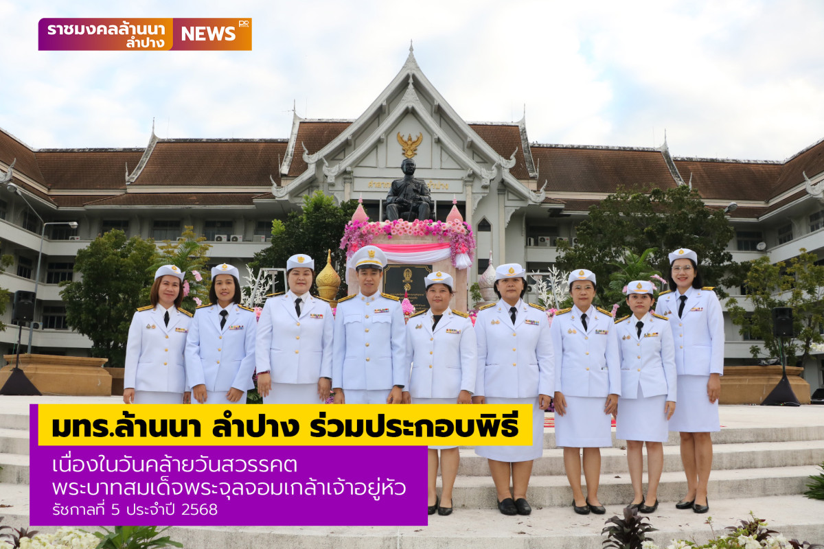 วันที่ 23 ตุลาคม 2568 ที่บริเวณพระบรมราชานุสาวรีย์ รัชกาลที่ 5 หน้าศาลากลางจังหวัดลำปาง คณาจารย์มหาวิทยาลัยเทคโนโลยีราชมงคลล้านนา ลำปาง (มทร.ล้านนา ลำปาง) เข้าร่วมประกอบพิธีวางพวงมาลา เนื่องในวันคล้ายวันสวรรคตพระบาทสมเด็จพระจุลจอมเกล้าเจ้าอยู่หัว รัชกาลที่ 5 หรือ วันปิยมหาราช ประจำปี 2568 เพื่อน้อมรำลึกถึงพระมหากรุณาธิคุณของพระองค์ ที่ทรงปฏิบัติพระราชกรณียกิจอันเป็นประโยชน์สุขแก่อาณาประชาราษฎร์และปวงชนชาวไทยตลอดมา