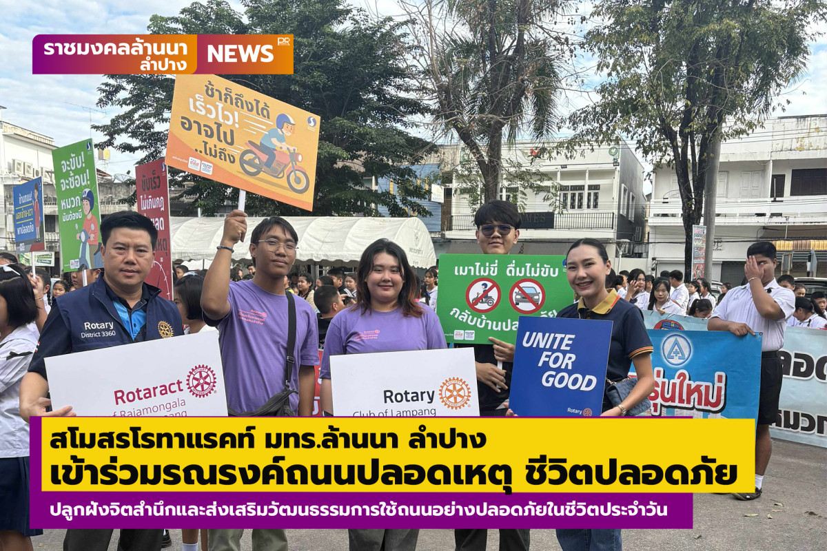 เมื่อวันอาทิตย์ที่ 16 พฤศจิกายน 2568 อาจารย์สรวิทย์ ปานพินิจ อาจารย์ประจำสาขาบริหารธุรกิจ (การตลาดและการตลาดดิจิทัล) และ ผู้ช่วยศาสตราจารย์พรพิมล อริยะวงษ์ อาจารย์ประจำกลุ่มวิชาสังคมศาสตร์และมนุษยศาสตร์ อาจารย์ที่ปรึกษาสโมสรโรทาแรคท์ราชมงคลลำปาง พร้อมด้วยนักศึกษาสมาชิกชมรม ได้เข้าร่วมกิจกรรมโครงการ “รณรงค์ถนนปลอดเหตุ ชีวิตปลอดภัย” จัดโดยสโมสรโรตารีลำปาง ณ ศูนย์นันทนาการสร้างสรรค์ (โฮงละกอน) จังหวัดลำปาง โดยได้รับเกียรติจาก นายกฤษณะ พินิจ รองผู้ว่าราชการจังหวัดลำปาง เป็นประธานในพิธีเปิดงาน
