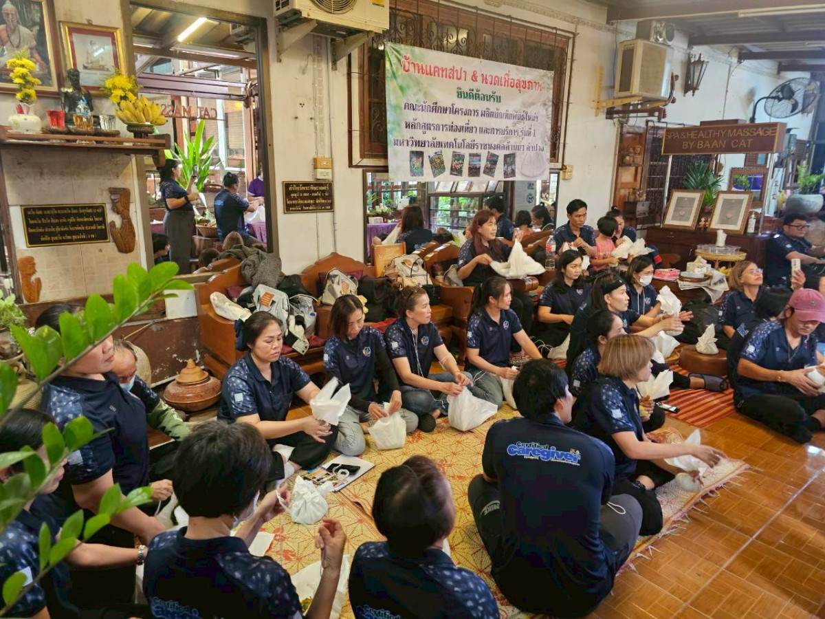 โดยในหัวข้อการให้บริการด้านการท่องเที่ยวเชิงสุขภาพเพื่อผู้สูงอายุได้มีการจัดกิจกรรมการทำลูกประคบสมุนไพรและการนวดประคบร้อน ณ ร้านแคทสปา & นวดเพื่อสุขภาพ อำเภอเมือง จังหวัดลำปางให้กับผู้เรียนจำนวน 30 คนในหลักสูตรผู้ดูแลผู้สูงอายุเพื่อการท่องเที่ยวเชิงสุขภาวะตามโครงการผลิตบัณฑิตพันธุ์ฯ สำนักงานปลัดกระทรวงการอุดมศึกษา วิทยาศาสตร์ วิจัยและนวัตกรรม ประจำปีงบประมาณ 2568