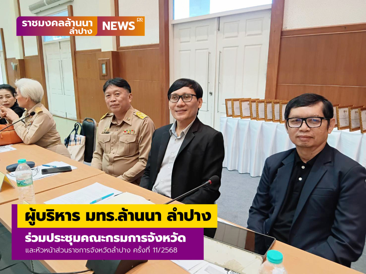 เช้าวันที่ 26 พฤศจิกายน 2568 เวลา 9.30 น. ผู้ช่วยศาสตราจารย์ไพโรจน์ ไชยเมืองชื่น ผู้อำนวยการสำนักงานบริหาร มหาวิทยาลัยเทคโนโลยีราชมงคลล้านนา ลำปาง (มทร.ล้านนา ลำปาง) ร่วมประชุมคณะกรมการจังหวัดและหัวหน้าส่วนราชการจังหวัดลำปาง ครั้งที่ 11/2568 ณ หอประชุมจังหวัดลำปาง ศาลากลางจังหวัดลำปาง โดยมีนายวิวัฒน์ อินทร์ไทยวงศ์ ผู้ว่าราชการจังหวัดลำปาง เป็นประธานในการประชุม โอกาสนี้ผู้ช่วยศาสตราจารย์ไพโรจน์ ไชยเมืองชื่น ยังได้แนะนำตัวในที่ประชุมหัวหน้าส่วนราชการจังหวัดลำปาง ตามวาระการประชุม ที่ 1.5 กรณีมีหัวหน้าส่วนราชการย้ายมาดำรงตำแหน่งใหม่