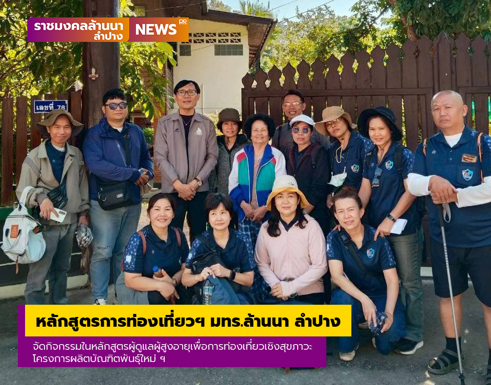 วันที่ 30 พฤศจิกายน 2568 หลักสูตรการท่องเที่ยวและการบริการ มทร.ล้านนา ลำปางนำโดย อาจารย์ ดร. ธัญพร เวศอุไร ,ผู้ช่วยศาสตราจารย์ไพโรจน์ ไชยเมืองชื่น , อาจารย์เพียงกานต์ นามวงศ์ , อาจารย์ ดร. ศิริขวัญ ปัญญาเรียน และอาจารย์เอมอร พิพัฒน์วัฒนะโยธิน อาจารย์ประจำหลักสูตรการท่องเที่ยวและการบริการได้จัดกิจกรรมการเรียนรู้ในหลักสูตรประกาศนียบัตร (Non-Degree) ผู้ดูแลผู้สูงอายุเพื่อการท่องเที่ยวเชิงสุขภาวะ
