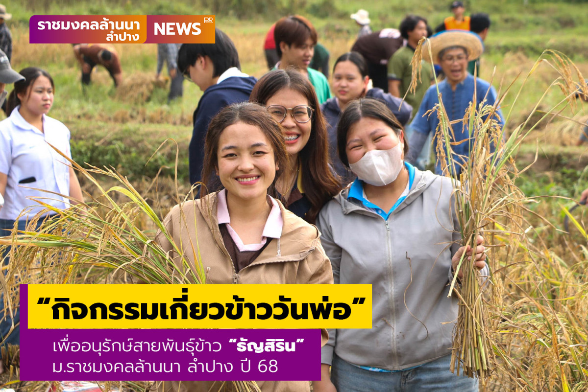 ทั้งนี้กิจกรรมดังกล่าวเป็นการบูรณาการการเรียนการสอน ทักษะในกระบวนการผลิตข้าวแก่นักศึกษาและบุคลากร โดยข้าวที่เก็บเกี่ยวได้จะแบ่งเก็บรักษาเมล็ดพันธุ์ไว้เพื่อเป็นการอนุรักษ์ และใช้ในการเรียนการสอนของนักศึกษา สำหรับพันธุ์ข้าวที่ มทร.ล้านนา ลำปาง อนุรักษ์คือข้าวเหนียวพันธุ์ธัญสิริน ซึ่งเป็นพันธุ์ข้าวที่ได้รับพระราชทานนามจากสมเด็จพระกนิษฐาธิราชเจ้า กรมสมเด็จพระเทพรัตนราชสุดาฯ สยามบรมราชกุมารี เดิมเป็นพันธุ์ กข6 มหาวิทยาลัยเทคโนโลยีราชมงคลล้านนา ได้ปรับปรุงพัฒนาสายพันธุ์ ตั้งแต่ปี 2545 ใช้เวลาในการพัฒนาสายพันธุ์ประมาณ 4 ปี จนได้ข้าวเหนียวพันธ์ธัญสิรินที่มีข้อดี คือ แตกกอได้ดี ลำต้นแข็งแรงไม่ล้อมง่าย มีขนาดสูงเฉลี่ย 130 เซนติเมตร ให้ผลผลิตสูงถึง 1,500-1,600 กิโลกรัมต่อไร่ สามารถเก็บเกี่ยวได้ง่ายด้วยเครื่องจักร ลดปัญหาการหักล้ม คุณภาพการหุงต้มอยู่ในระดับดี ข้าวเหนียวพันธุ์ธัญสิรินได้มีการพัฒนาออกมา 2 สายพันธ์ คือพันธุ์เตี้ยและพันธุ์ต้นสูง โดยพันธุ์เตี้ยจะเหมาะกับนาที่มีความสมบูรณ์สูงหรือนาลุ่ม ส่วนพันธุ์ต้นสูงมีคุณภาพเหมืองกับพันธุ์เตี้ย แต่พบปัญหาการหักล้ม แต่ดีกว่า กข 6 ธรรมดา เหมาะสำหรับดินที่มีความสมบูรณ์ต่ำหรือนาดอน