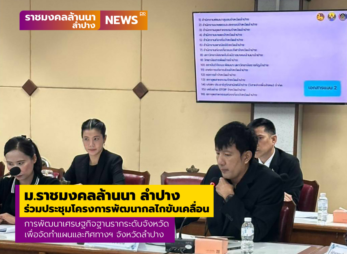 เมื่อวันที่ 16 ธันวาคม 2568 ผู้ช่วยศาสตราจารย์ไพโรจน์ ไชยเมืองชื่น ผู้อำนวยการสำนักงานบริหาร มหาวิทยาลัยเทคโนโลยีราชมงคลล้านนา ลำปาง (มทร.ล้านนา ลำปาง) มอบหมายให้ผู้ช่วยศาสตราจารย์สมเกียรติ ตันตา ผู้ช่วยผู้อำนวยการสำนักงานบริหารมหาวิทยาลัยเทคโนโลยีราชมงคลล้านนา ลำปาง และนายธัญพันธุ์ ภู่ทอง นักวิเคราะห์นโยบายและแผน กองบริหารทรัพยากรลำปาง เข้าร่วมประชุมโครงการพัฒนากลไกขับเคลื่อนการพัฒนาเศรษฐกิจฐานรากระดับจังหวัด ครั้งที่ 1 ประจำปีงบประมาณ พ.ศ.2568 ณ ห้องประชุมเวียงละกอน ชั้น 4 ศาลากลาง จังหวัดลำปาง