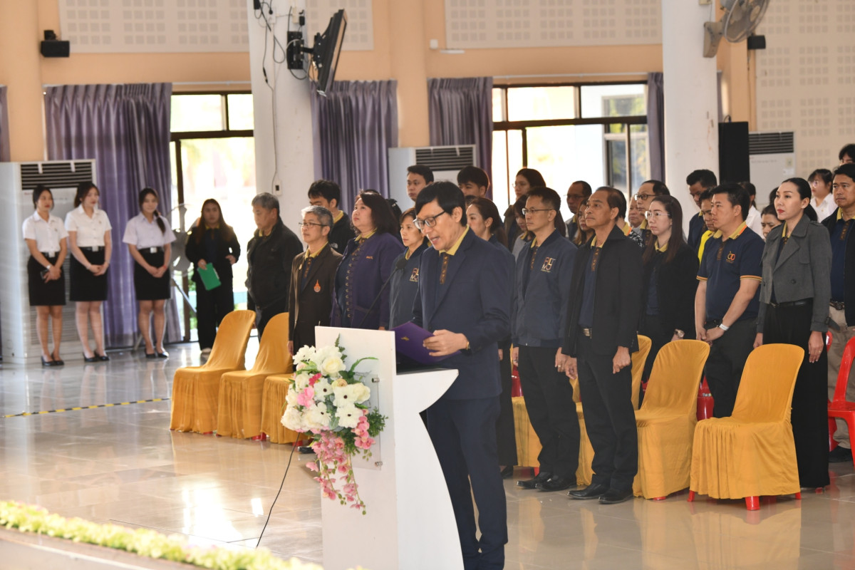 วันที่ 19 มกราคม 2568 ที่ห้องอาคารอเนกประสงค์ มหาวิทยาลัยเทคโนโลยีราชมงคลล้านนา ลำปาง (มทร.ล้านนา ลำปาง) ผู้ช่วยศาสตราจารย์ไพโรจน์ ไชยเมืองชื่น ผู้อำนวยการสำนักงานบริหาร มทร.ล้านนา ลำปาง นำคณะผู้บริหาร คณาจารย์ บุคลากร นักศึกษา มทร.ล้านนา ลำปาง สถาบันวิจัยเทคโนโลยีเกษตรฯ และสมาคมศิษย์เก่าแม่วัง มทร.ล้านนา ลำปาง ประกอบพิธีเนื่องในโอกาสวันคล้ายวันสถาปนา ครบรอบ 21 ปี มหาวิทยาลัยเทคโนโลยีราชมงคลล้านนา ประจำปีการศึกษา 2569 เบื้องหน้าพระบรมฉายาลักษณ์ พระบาทสมเด็จพระบรมชนกาธิเบศร มหาภูมิพลอดุลยเดชมหาราช บรมนาถบพิตร เพื่อสำนึกในพระมหากรุณาธิคุณเนื่องในวันสถาปนามหาวิทยาลัย วันที่ 18 มกราคม 2569