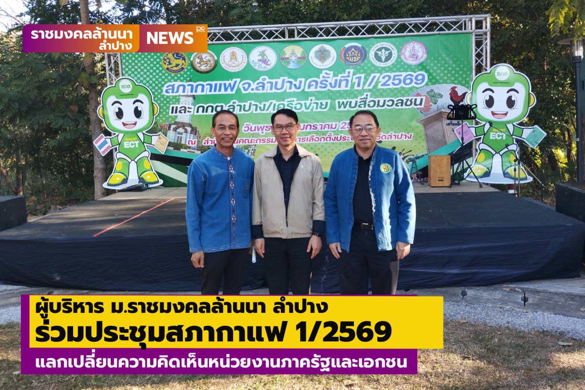 เมื่อวันที่ 20 มกราคม 2569 ที่ผ่านมา มหาวิทยาลัยเทคโนโลยีราชมงคลล้านนา ลำปาง โดย ผู้ช่วยศาสตราจารย์จรูญ สินทวีวรกุล ผู้อำนวยการกองการศึกษาลำปาง เป็นตัวแทนเข้าร่วมกิจกรรมสภากาแฟจังหวัดลำปาง ครั้งที่ 1/2569 ณ สำนักงานคณะกรรมการการเลือกตั้งประจำจังหวัดลำปาง โดยมี รองผู้ว่าราชการจังหวัดลำปาง ผู้อำนวยการสำนักงานคณะกรรมการการเลือกตั้งประจำจังหวัดลำปาง ผู้บริหาร หน่วยงานภาครัฐ รัฐวิสาหกิจ ภาคเอกชน สื่อมวลชน และเครือข่ายประชาสัมพันธ์ เข้าร่วมกิจกรรม เพื่อเป็นเวทีแลกเปลี่ยนความคิดเห็น เสริมสร้างความสัมพันธ์ทางราชการ และสร้างบรรยากาศการพบปะพูดคุยที่เป็นกันเอง ส่งเสริมความร่วมมือในการทำงานระหว่างหน่วยงานภาครัฐ ภาคเอกชน และภาคีเครือข่าย ตลอดจนเป็นช่องทางในการประชาสัมพันธ์กิจกรรมที่เป็นประโยชน์ต่อพี่น้องประชาชน